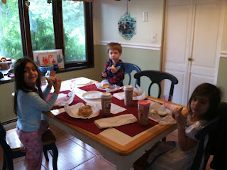 While Ivan & Dave were partying with Phish, Everett had a sleepover at Madelyn & Haley's. He was so excited and so were Faith and I. The kids played so nicely in the basement and fell asleep together in the same room. Everett had his own princess bed (so mad I forgot to take a picture). After the kiddies were asleep Faith and I opened a bottle of wine. Such a great night for everyone! The next day the kids made playdoh cookies after breakfast. We can't wait for our next sleepover!